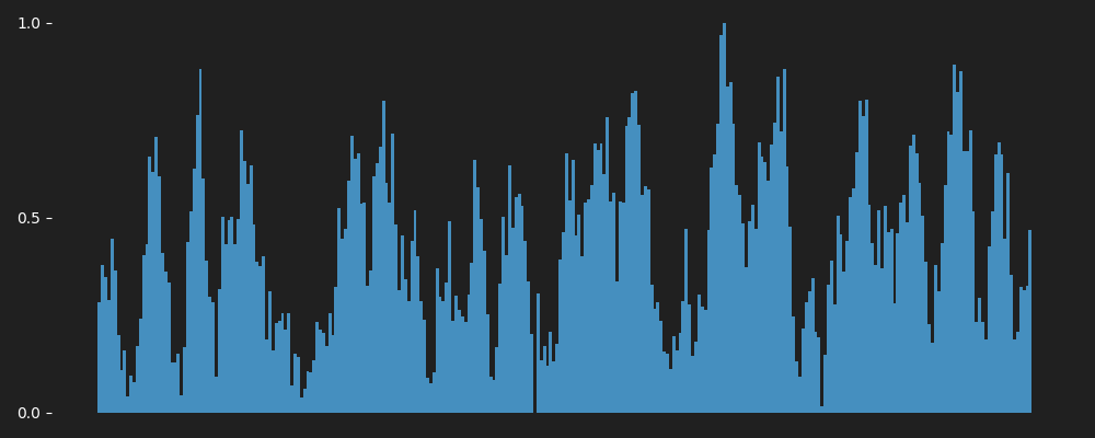 Let’s visualise this with a proper data set. Here’s another set of random values between 0 and 1: