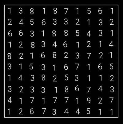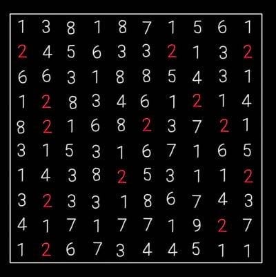 Consider this example — how many 2s are in this grid of numbers?